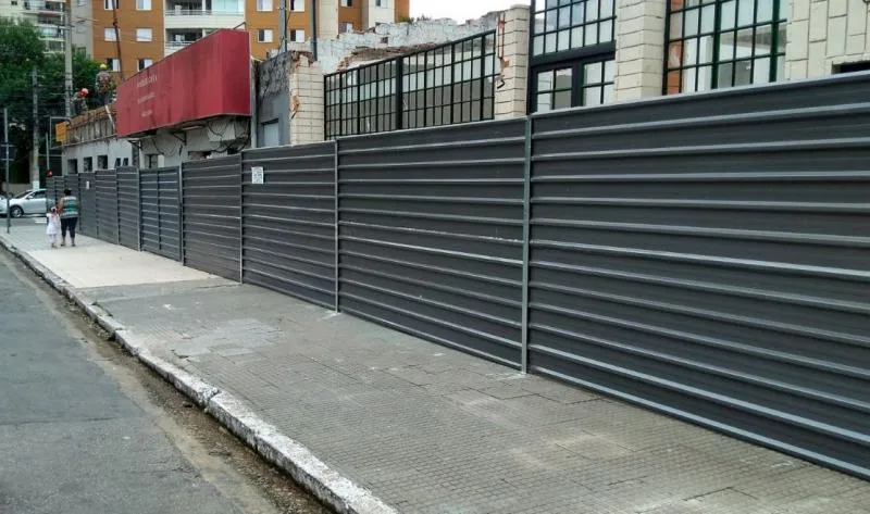 Entre os equipamentos disponíveis, encontram-se os tapumes de metal, essenciais para garantir segurança e organização em canteiros de obras.
